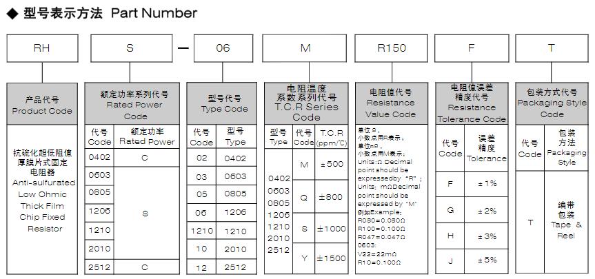 風(fēng)華高科抗硫化超低阻值厚膜片式固定電阻器型號(hào)命名規(guī)則:
