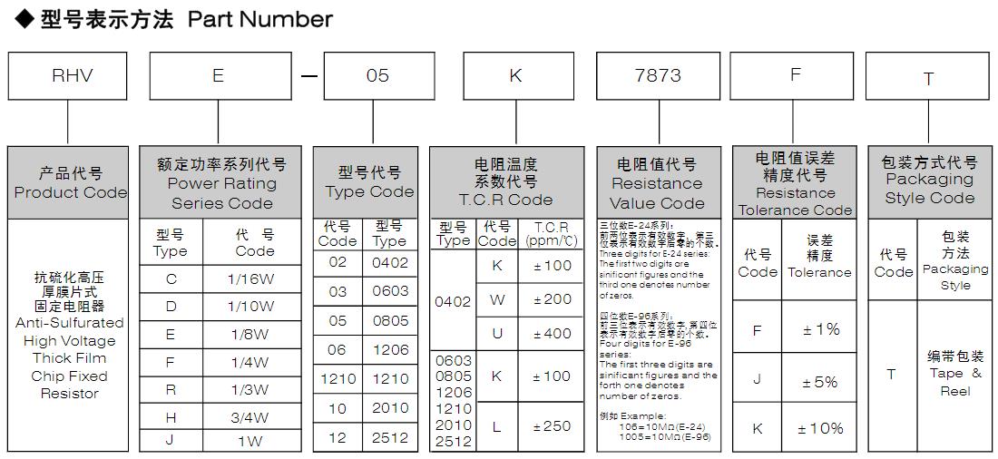 風華高科抗硫化高壓厚膜片式固定電阻器型號命名規則: