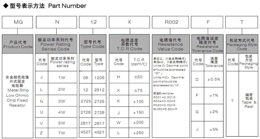 風華高科合金超低阻值片式固定電阻器型號命名規則: