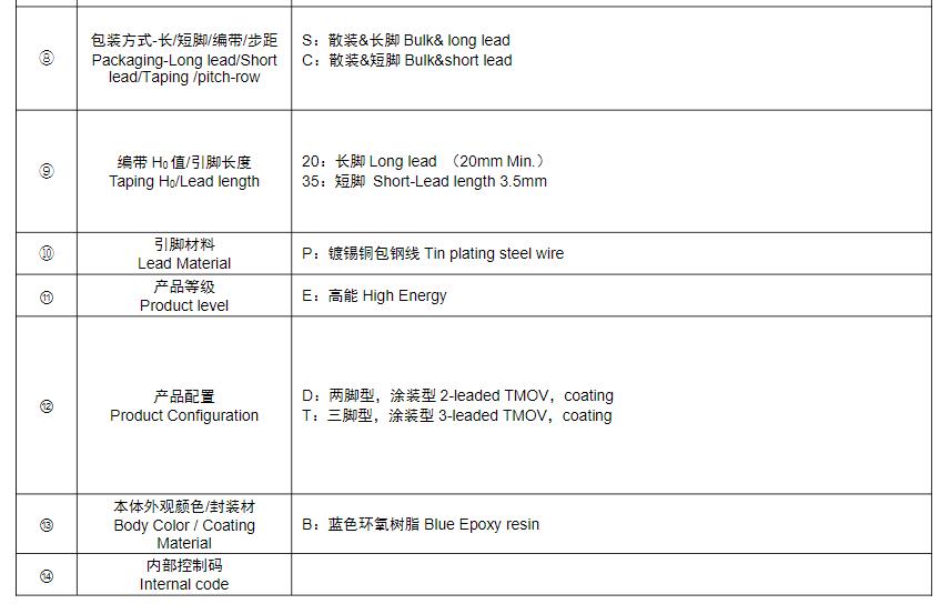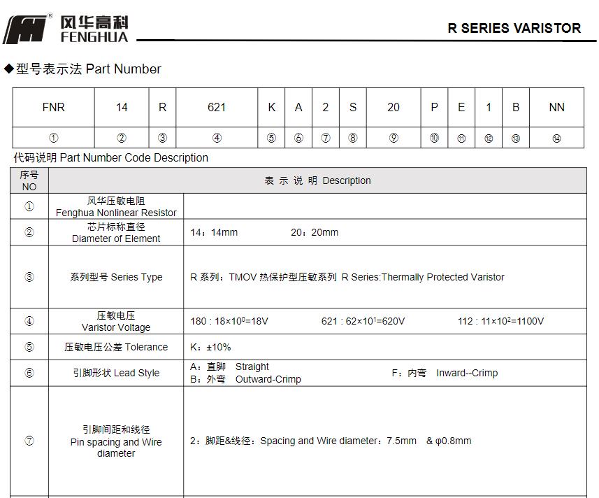 風華高科R系列壓敏電阻器型號命名規(guī)則: