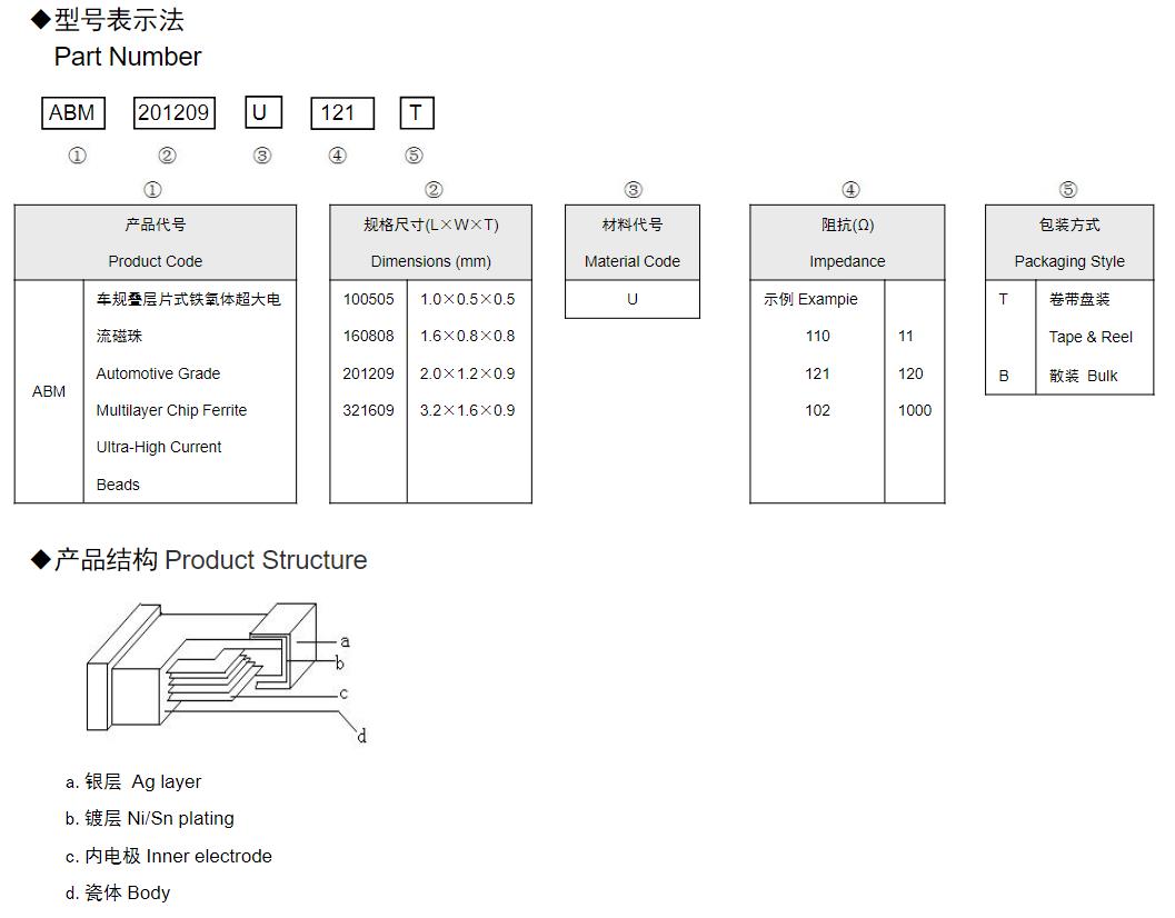 風(fēng)華高科車規(guī)疊層片式鐵氧體超大電流磁珠命名規(guī)則:
