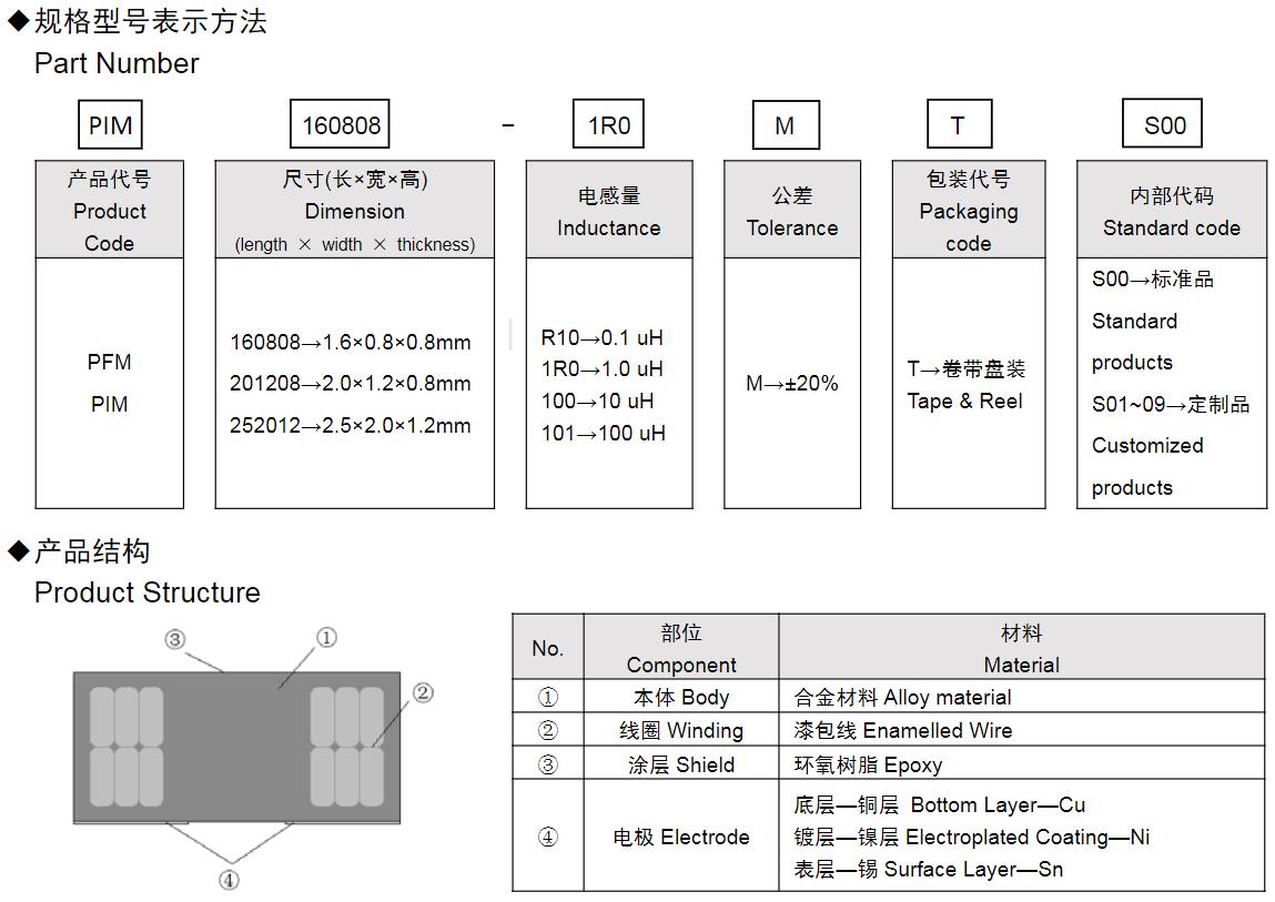 風(fēng)華高科PIM&PFM系列功率電感器命名規(guī)則: