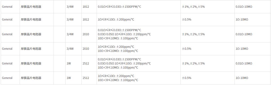 溫度系數:0.01Ω≤R≤0.03Ω:±1500PPM/°C