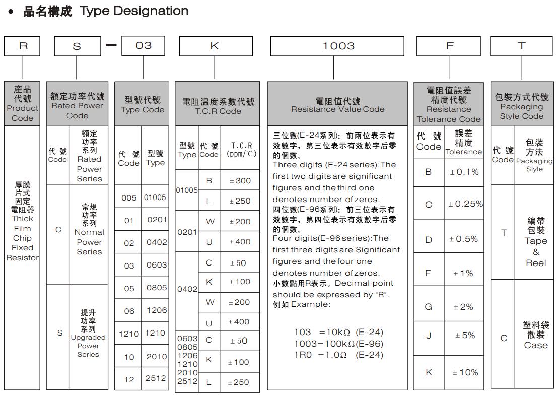 5%精度的命名:RS-05K102JTL