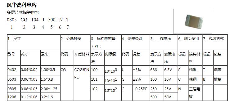 風華高科貼片電容命名規則: