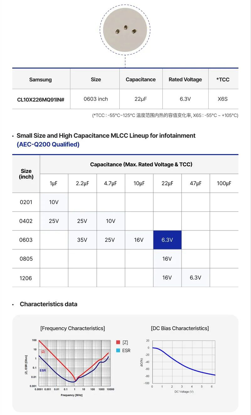 三星電機(jī)新品車載電容MLCC 0603 22uF