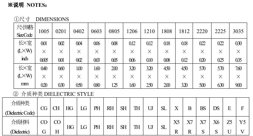 風(fēng)華高科電容材質(zhì)與規(guī)格尺寸對(duì)照表