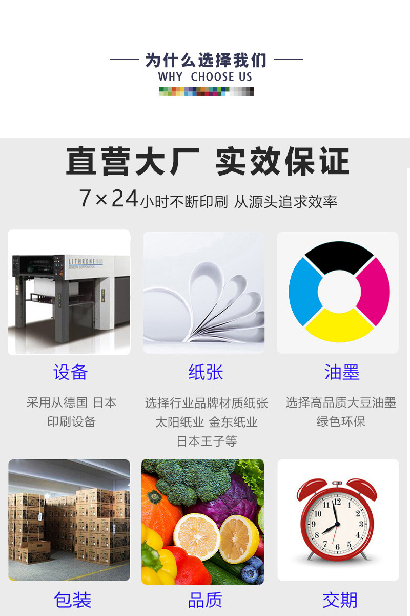 5、印刷項目緊急可制定一整套解決方案,優先排單印刷生產;時間質量雙重保障;